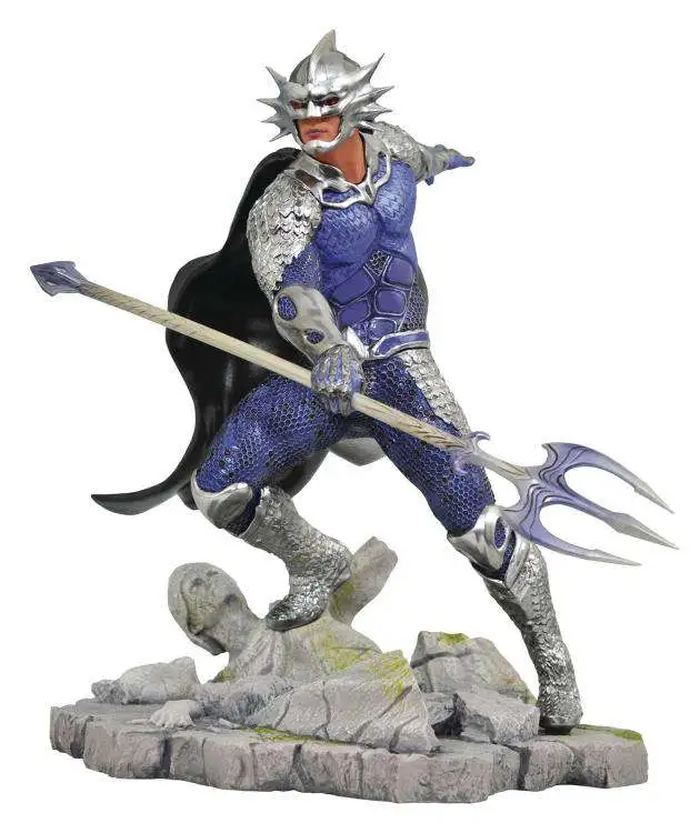 Arthur Curry, the Aquaman, faces off with the Ocean Master in these 9-inch PVC sculptures. Featuring detailed sculpting by Rocco Tartamella based on designs by Mark Wong, features actor likeness and fine paintwork that compares with a high-end resin statue. Each diorama is in scale to all other DC Movie Gallery PVC dioramas, and comes packaged in a full-color window box.
