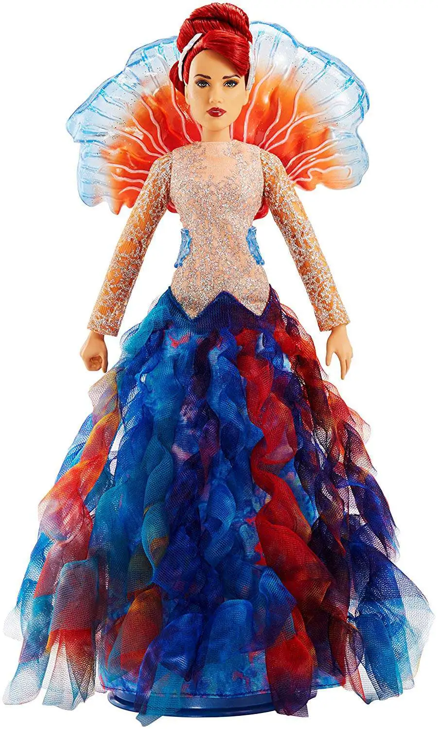 Captivate on land and at sea with this true-to movie, 12 scale, Princess Mera fashion doll. The stunning heroine wears a colorful, full-length royal gown with aqua blue and red tulle layered skirt, shimmery long sleeve top, and dramatic jellyfish collar piece. She was created with state of the art designs, for the most authentic lead actress and character likeness. This premium Mera doll is perfect for movie fashion play and display. You can also choose the Mera fashion doll in her shimmery aqua battle suit with tiara, boots, gauntlets and water blast super power. Together they create a powerful princess of Atlantis collection!