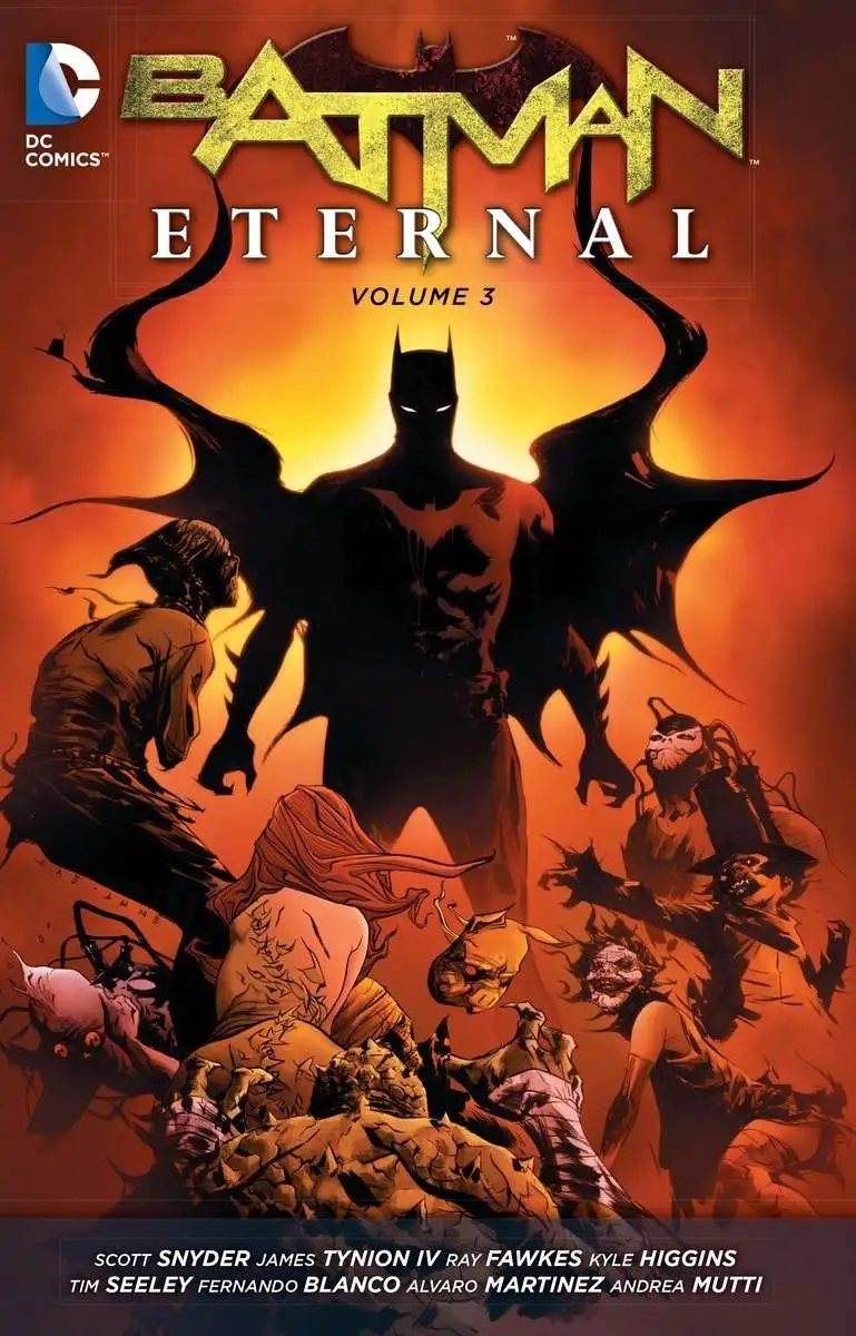 The year-long weekly saga that rocked the world of Batman to its core reaches its stunning conclusion in BATMAN ETERNAL VOL. 3. Written by Scott Snyder, James Tynion IV, Ray Fawkes, Kyle Higgins and Tim Seeley, and drawn by a host of talented artists, its the payoff to the biggest mystery in the Dark Knights history! Collects issues #35-52.