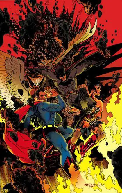 Oversize special issue! Superstar writer Joshua Williamson pens the beginning of the next big DCU event! It all starts here! A new Dark Army made up of the DCU’s greatest villains has formed on the edges of the Multiverse! The DCU’s best and most powerful heroes are pulled together in an epic war to push the darkness back! But in the end, they are no match for it! That’s right, you heard it here first: the Justice League are killed by the Dark Army, with only one survivor to warn the remaining heroes of Earth about what is coming for them! FINAL ISSUE!
