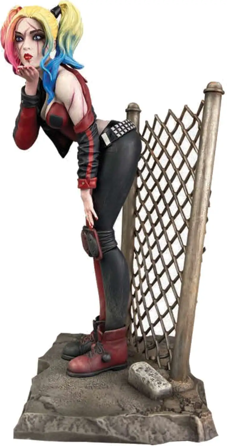 A Diamond Select Toys Release! Death becomes her! TheSuicide Squad’s liveliest heroine has survived the zombieoutbreak and retained her trademark attitude. Blowing akiss with her face covered with scars, she strikes a pose bya chain-link fence in this approximately 8″ sculpture. Castin high-quality PVC, it features detailed sculpting and paintapplications and comes packaged in a full-color windowbox. Sculpted by Sam Greenwell.