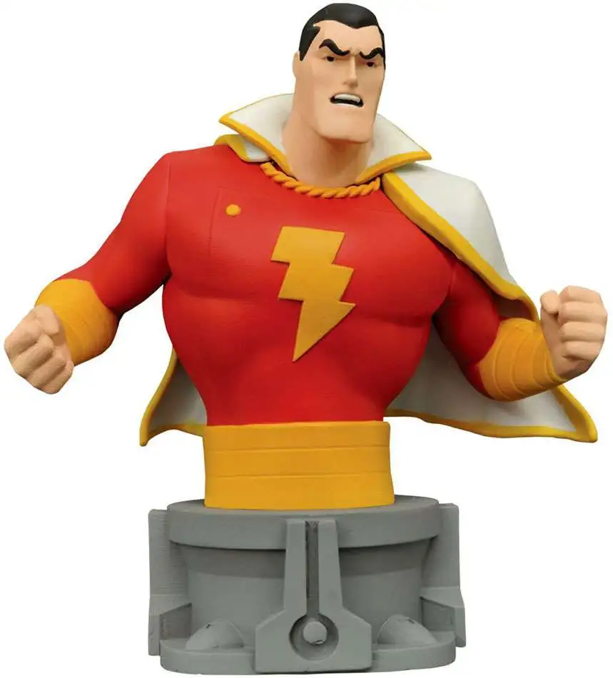 You don’t need the wisdom of Solomon to know that this bust is a must-buy! Based on his appearance in the Justice League Unlimited TV series, this approximately 6-inch bust of Shazam is the latest release in the animated-style resin bust line by DST. Featuring detailed sculpting and paint applications, Billy Batson’s alter ego is posed atop a pedestal styled after the Justice League’s Watchtower satellite. This bust is limited to only 3,000 pieces and comes packaged in a full-color box with a certificate of authenticity. Sculpted by Varner Studios!