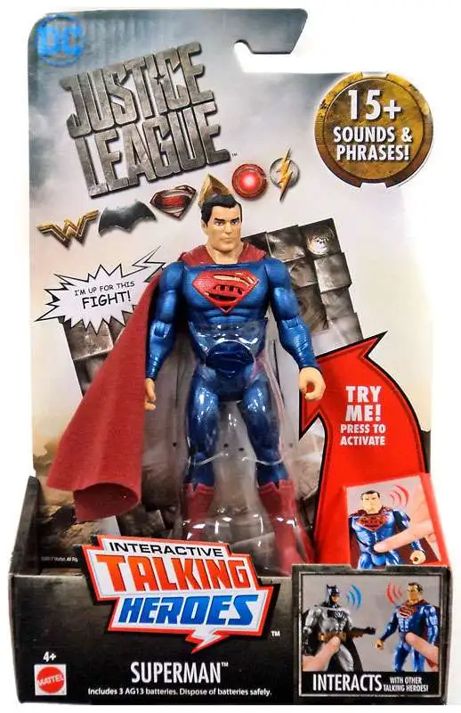 This new Superman figure delivers authentic action play and sounds from the Justice League movie. The highly detailed 6 scale Man of Steel figure has 14 points of articulation and a true to movie suit and cloth cape. Reenact the Super Heros powerful scenes with actual Superman dialogue! Simply press his power belt buckle and hear him speak! The figure also recognizes other Collection figures when in close proximity and speaks to them!buy = ‘Y’;
