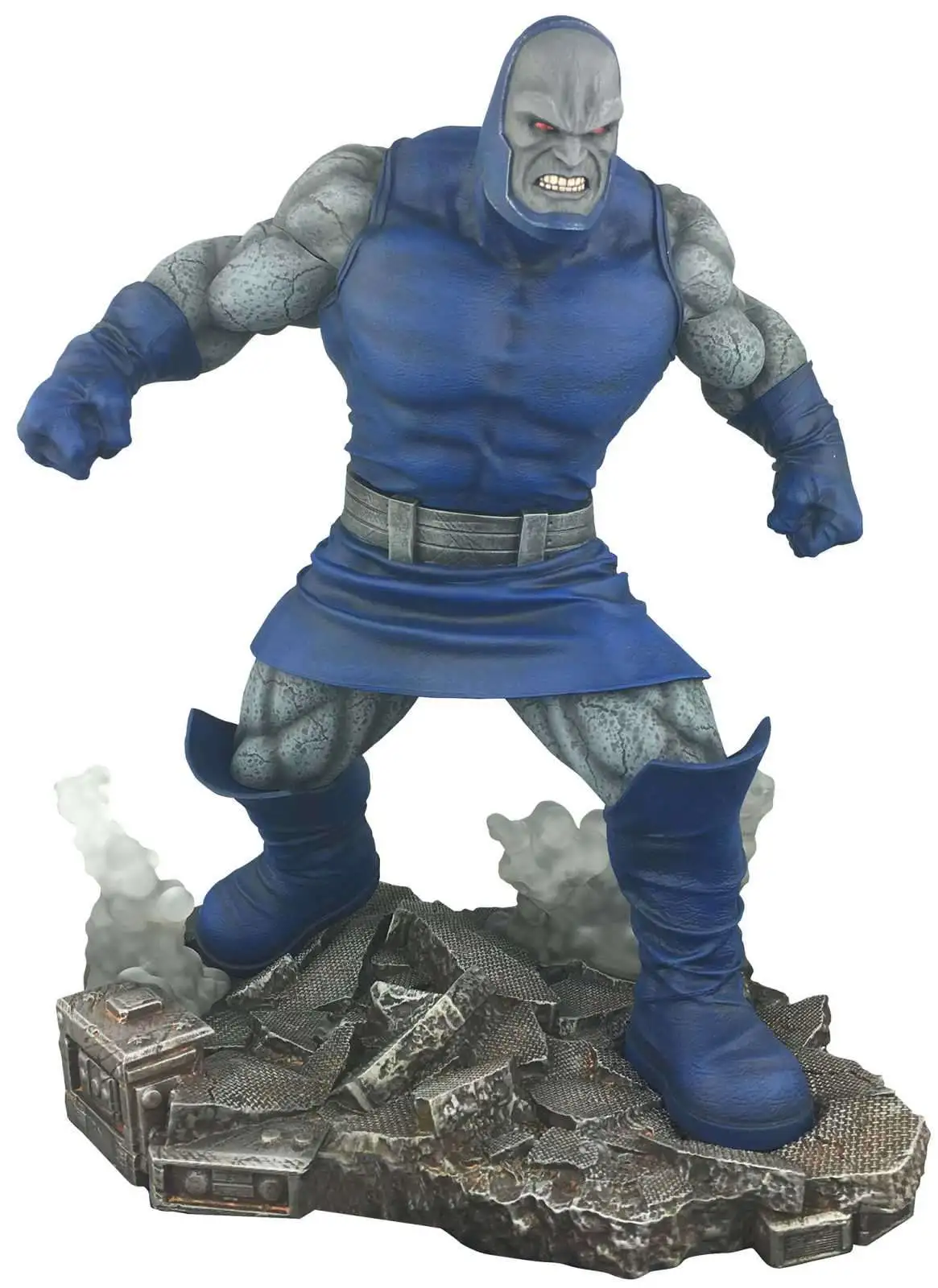 A Diamond Select Toys release! All hail Darkseid! The ruler of Apokolips gets ready to pulverize his foes in this all-new PVC Diorama from the DC Gallery line! Based on his comic-book appearance, it measures approximately 10 inches tall and includes an alternate head where his eyes crackle with Omega Beams. Made from high-grade plastic, it comes packaged in a full-color window box. Designed by Caesar. Sculpted by Alterton.