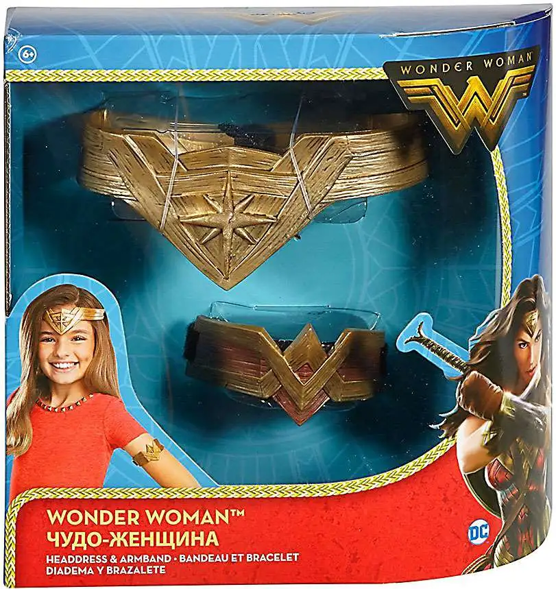 Become Wonder Woman with her signature headdress and arm band! Both Amazon Warrior accessories feature authentic, true to movie details and emblems! Fans can recreate the epic scene when she receives the iconic headdress and indestructible armband and play out favorite action battles! Put them on and feel like a Super Hero!