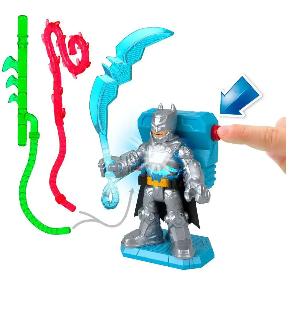 Young crimefighters can power up the Super Hero versus Super-Villain battle action with this Imaginext DC Super Friends Batman Battle Multipack from Fisher-Price. This awesome figure set includes 5 poseable character figures, each with a translucent torso that lights up when kids attach the figure to the backpack. Kids will love acting out their own pretend Gotham City adventures with Batman, Robin, Batgirl, Bane, and Poison Ivy.