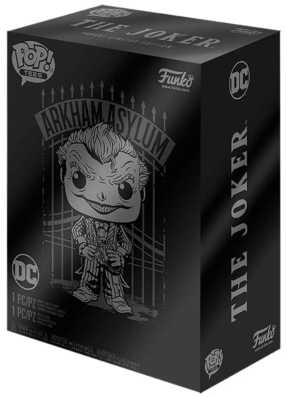 This is a Funko DC Arkham Asylum POP! Heroes The Joker Exclusive Vinyl Figure & T-Shirt [X-Large]