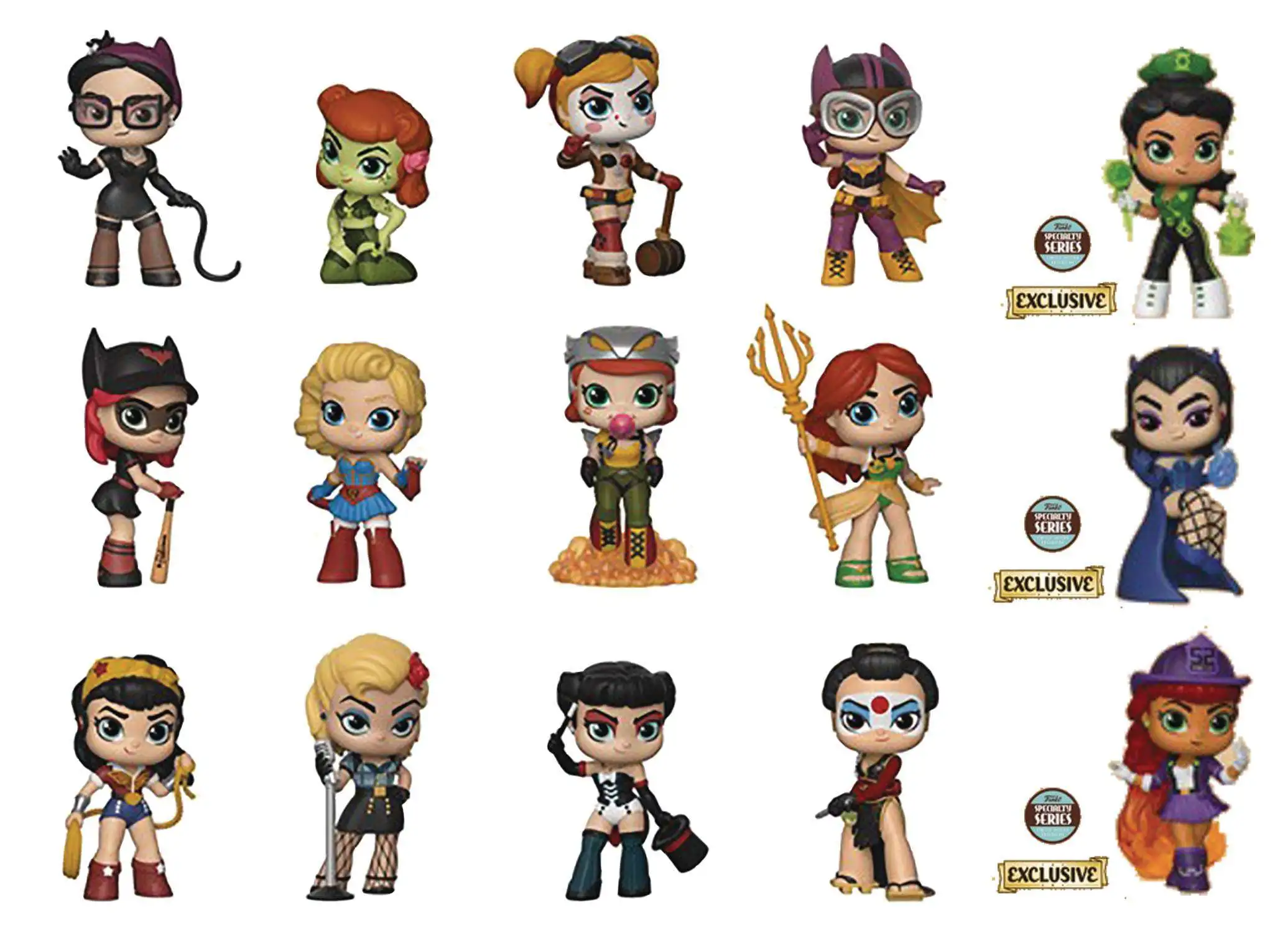 While theres no denying that Mystery Minis are absolutely adorable, the 12-piece DC Bombshells Mystery Minis are as fierce as they are adorable. The dream team includes Wonder Woman wielding her lasso of truth, Batwoman, Batgirl, Harley Quinn and her trusty mallet, Katana and Katana sword, Poison Ivy looking mighty green, Catwoman with whip in hand, Supergirl looking ready to fly, Mera, Hawkgirl nonchalantly blowing a bubble with her gum, Black Canary and Zatanna, all with a 1/12 rarity.