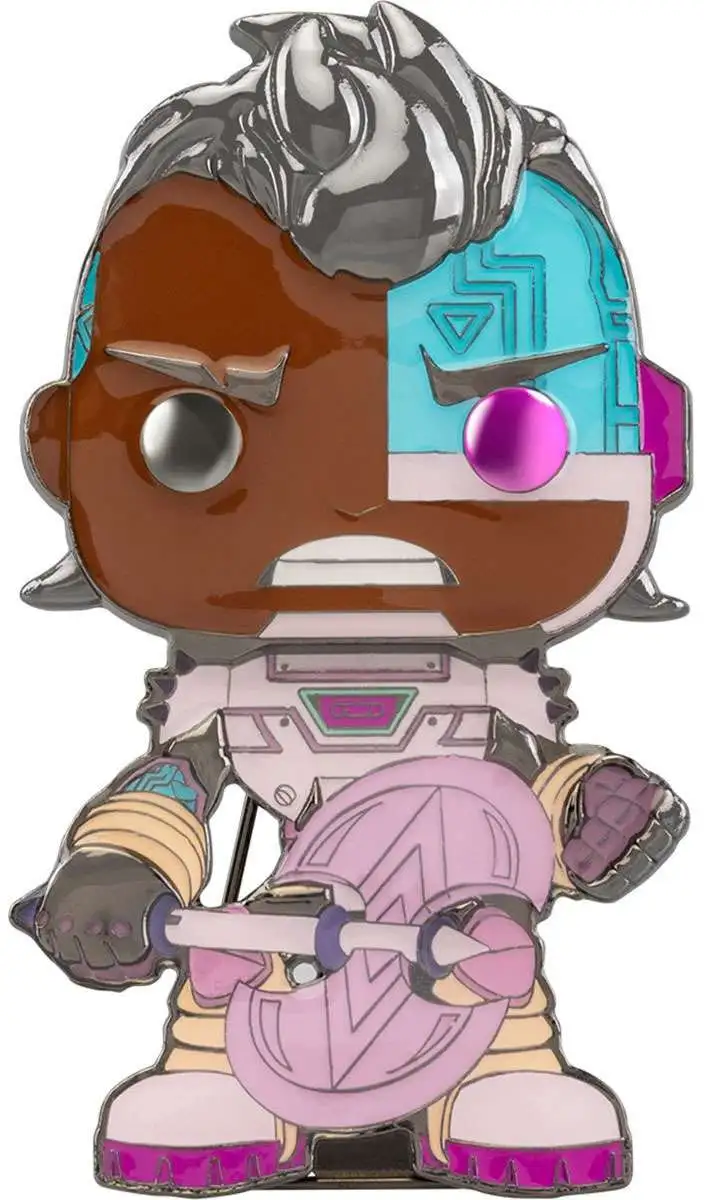 This Teen Titans Go! Cyborg Large Enamel Pop! Pin measures approximately 4 1/2-inches tall, just like the Pop! Vinyl Figure it’s based on. Not only does the pin have the standard pin backings so you can attach it to bags or a cork board; it also has a “Funko Crown” pin stand allowing it to stand up for a dynamic display! True to it’s namesake, the head is raised making it pop from the body. This large Pop! Pin comes packaged in a window display box.