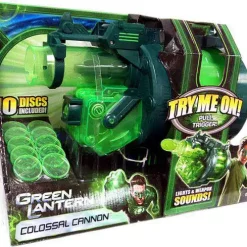 The Green Lantern Colossal Cannon blasts from the big screen into kids’ hands with lights, weapon sounds, a rotating chamber and disc launcher to shoot projectiles at intergalactic villains! Simply pull the trigger for an intergalactic blast or hold it down for rapid-fire weapon sounds. Chamber will spin and light up as a disc shoots out at your enemies. 10 discs included!